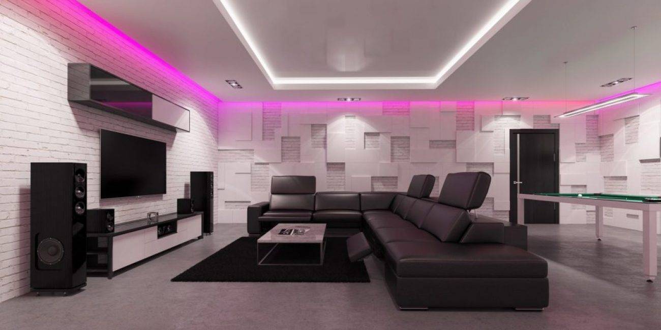 - светодиодная подсветка по периметру конструкций добавляет декоративности, особенно в гостиной.