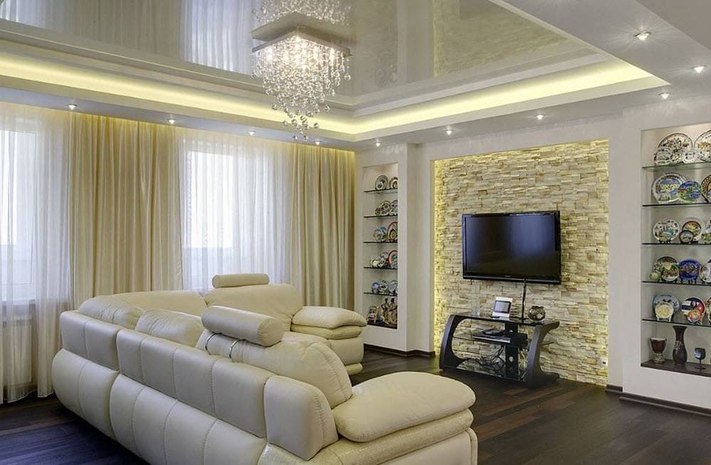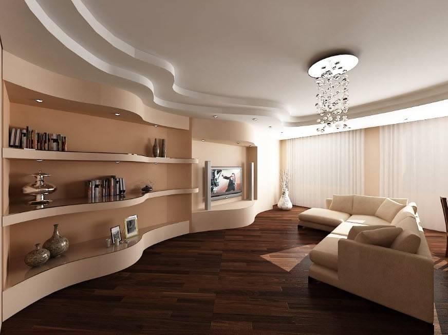 Совет! Чтобы форма гипсокартонного потолка, выбранного для декорирования гостиной, смотрелась гармонично, она должна соответствовать общему стилевому решению, выбранному для оформления квартиры или дома.