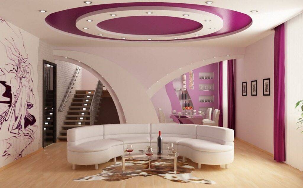 Если в двадцатом веке в гостиной были большой редкостью многоуровневые поверхности, то теперь никого не удивить сложными потолочными формами.