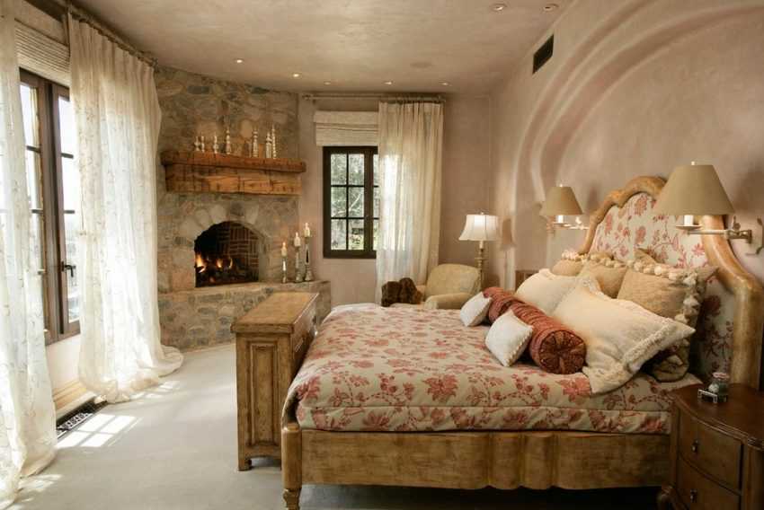 Декоративный стиль сложно воплотить в ограниченном пространстве 10 квадратов, поэтому дизайнеры используют детали. Визуально увеличить помещение помогут пастельные оттенки и мебель, фасады которой светлее отделки. Маленькую спальню оформляют в нежной гамме: