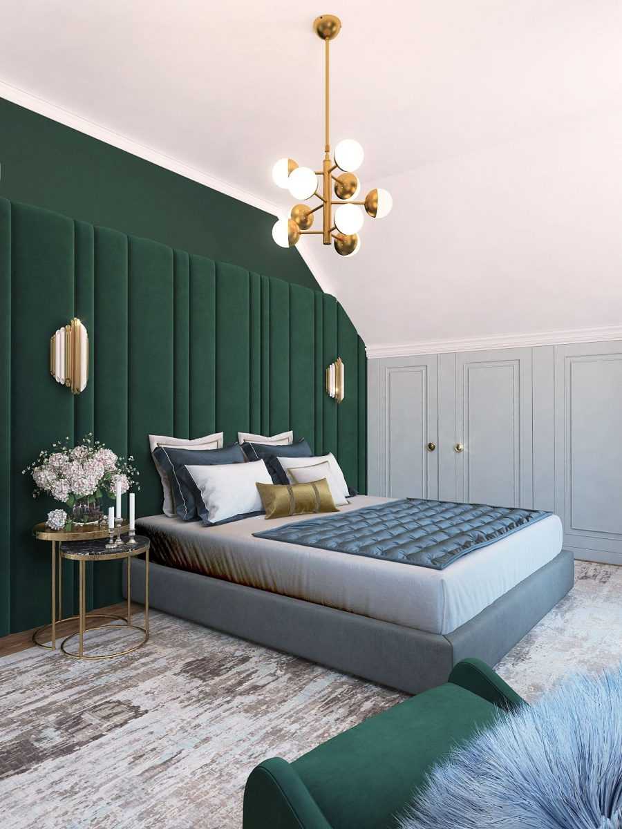 Грамотно расставленные насыщенные акценты подчеркнут интимность комнаты, а также укажут на особенности архитектуры небольшой спальни.
