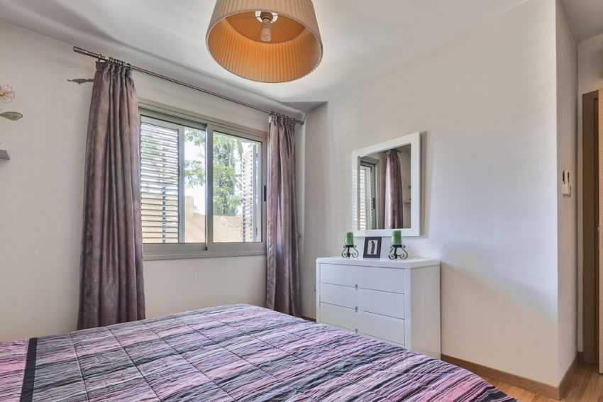 - Прикроватную тумбочку можно поставить одну, а не две.