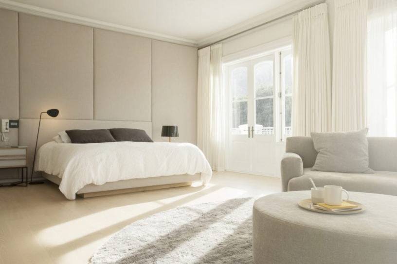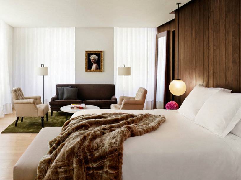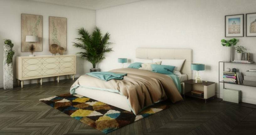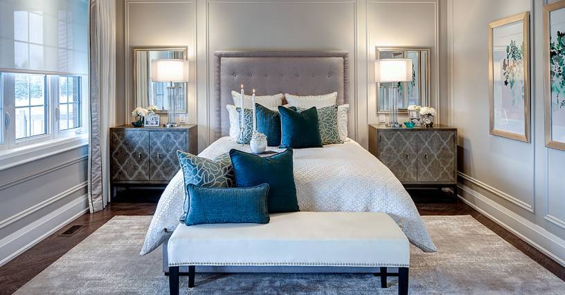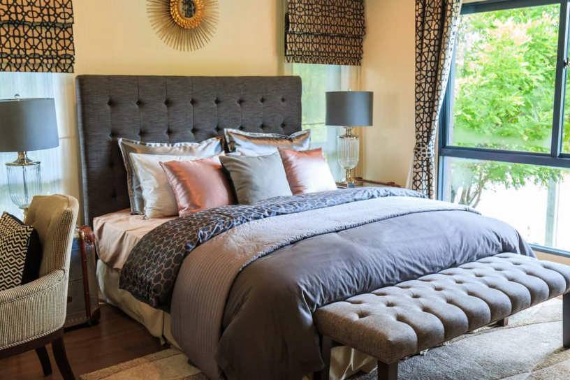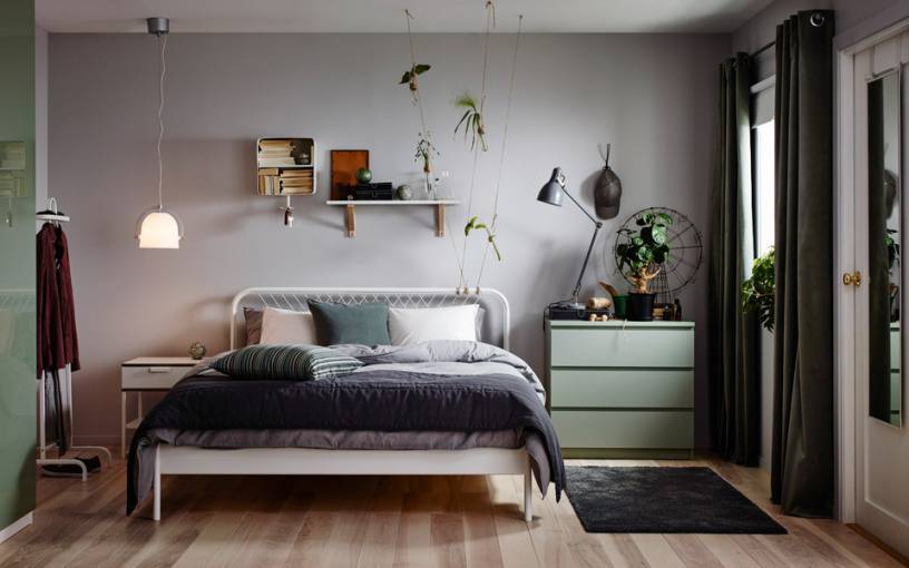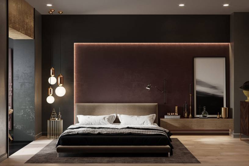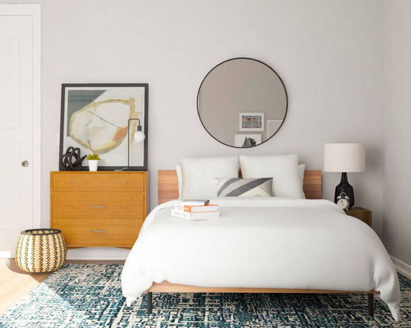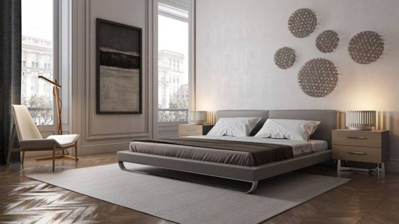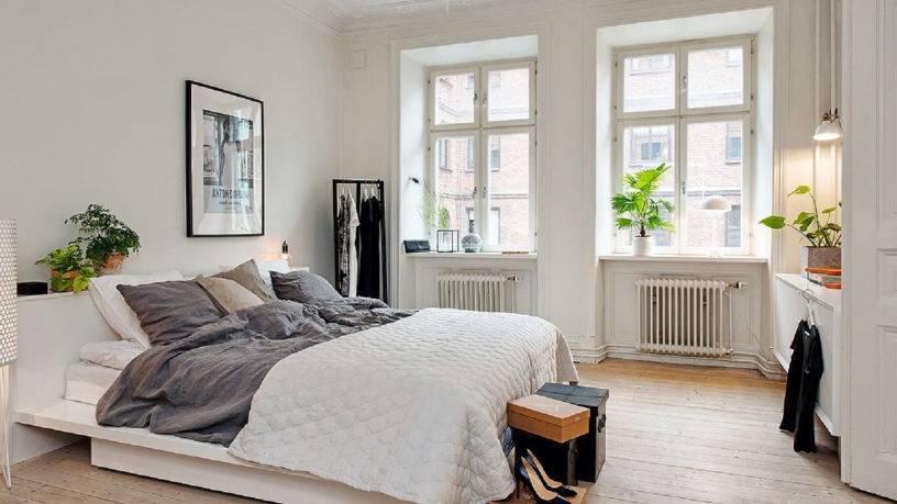 кровать должна находиться подальше от двери, чтобы не сделать зону отдыха проходной, и ближе к окну, чтобы визуально увеличить пространство;