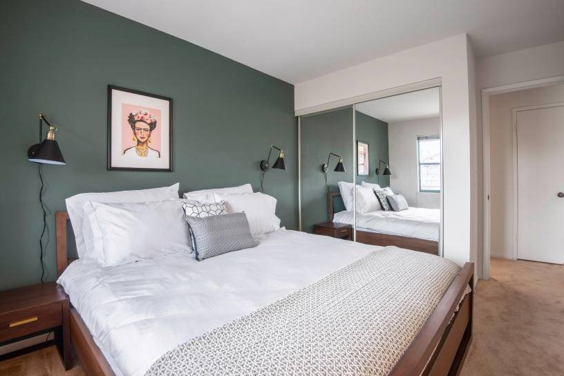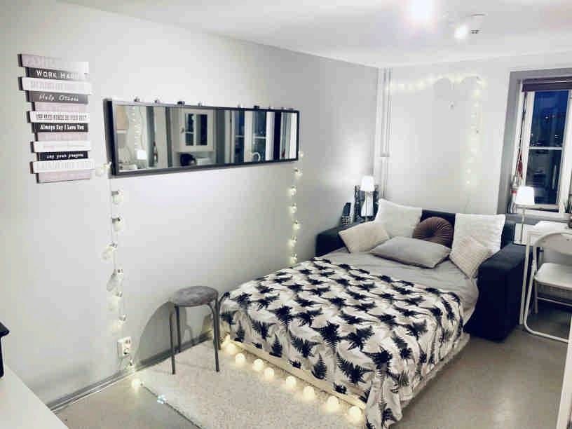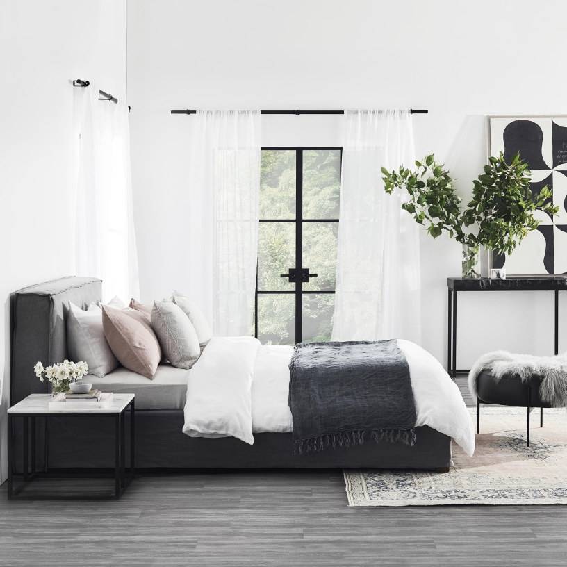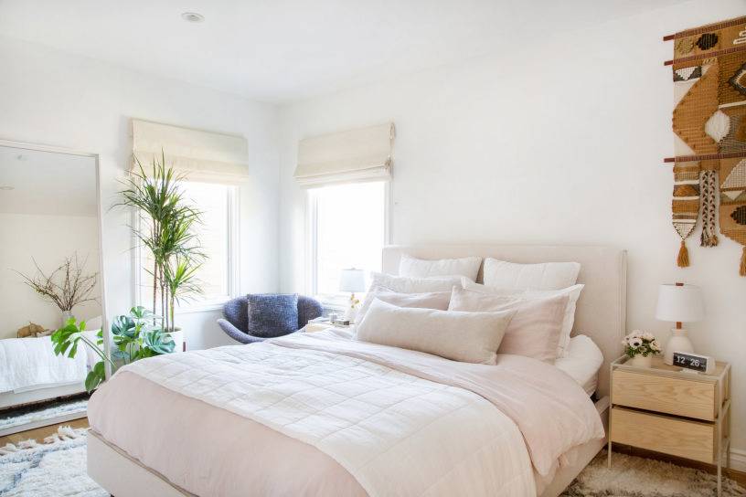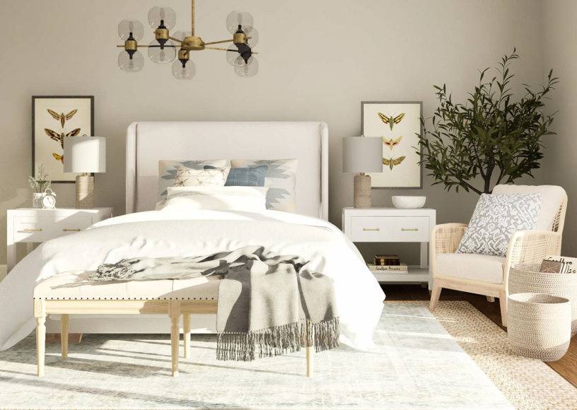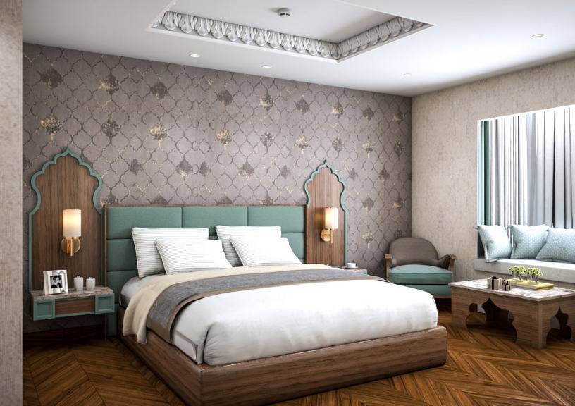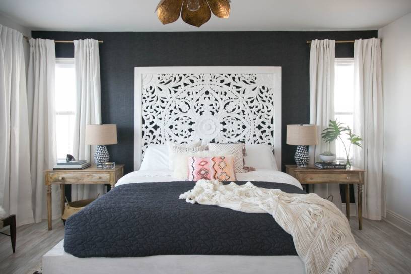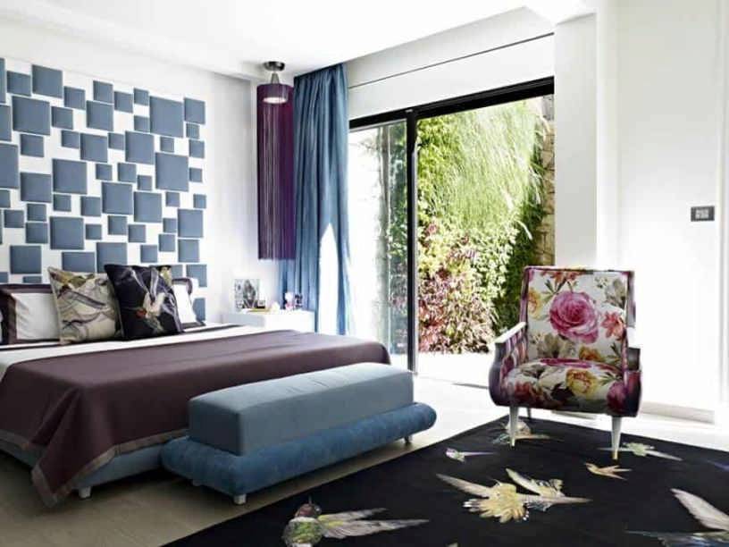 кровать должна находиться подальше от двери, чтобы не сделать зону отдыха проходной, и ближе к окну, чтобы визуально увеличить пространство;