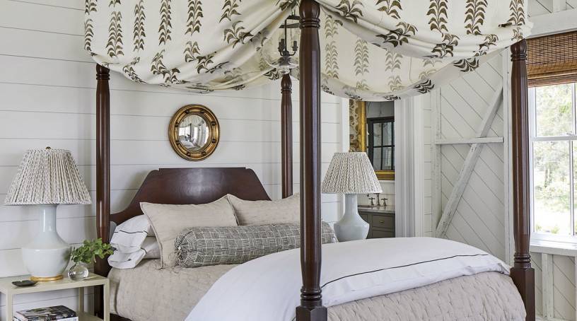 Самый простой и удобный вариант зонирования – деление шторами или занавесками. Их можно сменить, а также убрать в любое время. Если поместить шторы вокруг кровати, то получится изолированная зона для сна.