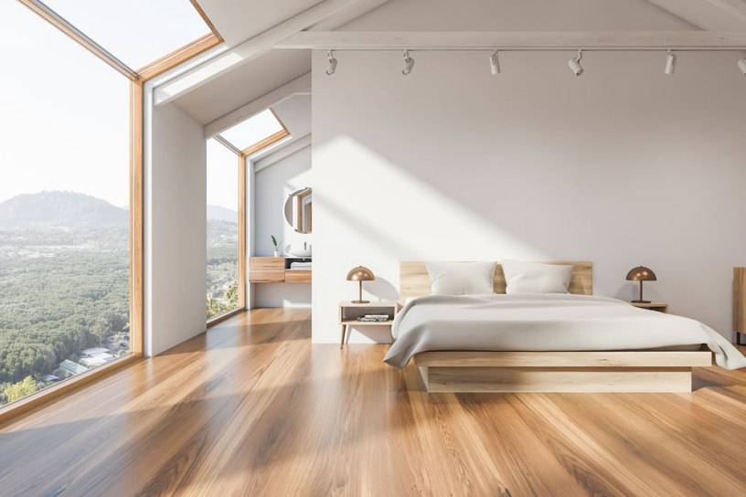Потолок рекомендуется сделать бежевым или белым, а пол устлать деревянным ламинатом или паркетом. Они не только внешне привлекательны и подходят к любой стилистике, но и приятны на ощупь при хождении босиком.