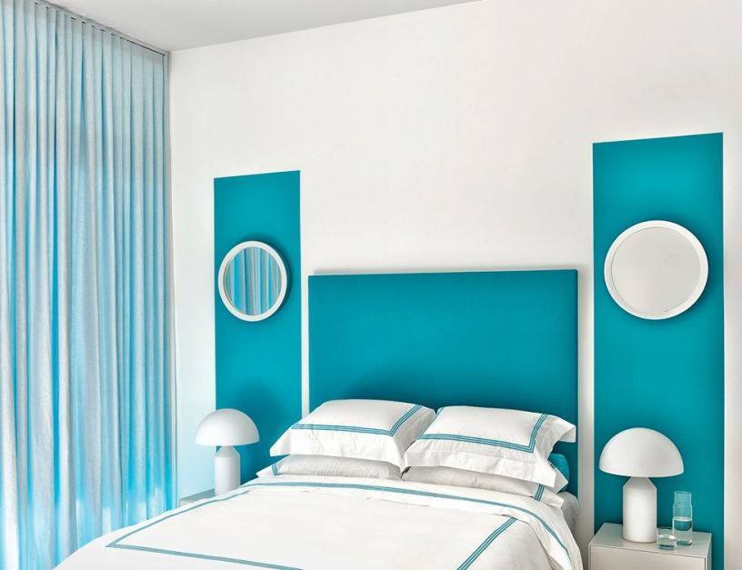 Но важно помнить, что цвета не должны быть сильно резкими и яркими, нужен плавный переход. Например, если вы хотите комнату в синих и голубых тонах, то зону спальни стоит оформить сочетанием голубого и белого цвета, а гостиную – синим