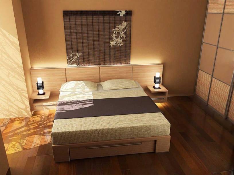 Дизайн комнаты 15,16,17,18 кв. м. фото, где отчетливо виден современный практичный восточный стиль. Светлые приятные тона, пробковые бамбуковые обои придают изысканности помещению. Стены украшают изумительные элементы декора и стильные ночники, которые дают легкий расслабляющий свет. Функциональный столик может послужить как полноценным рабочим местом, так и элементом женского туалета. Цена вопроса составляет 5000-7000 долларов.