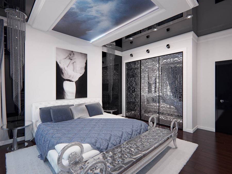 Неординарный интерьер спальни 16 кв.м. в стиле нео-классика