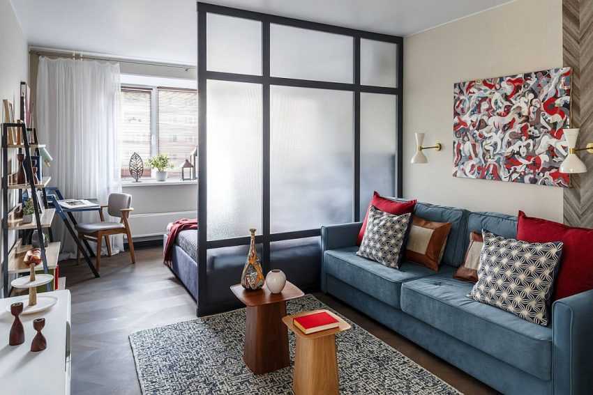 Зонирование спального места в маленькой гостинойИсточник postila.ru