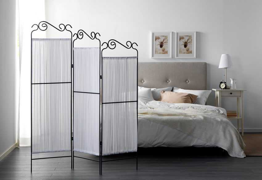 Виртуальное разделение достигается световыми эффектами, а также использованием разных цветов в оформлении. Так, пространство спальни можно отделить созданием дизайна в светлых тонах, а кабинета – в более темных или нанесением различных рисунков. Физическое разделение зоны достигается размещением между ними элементов мебели или перегородкой, ширмой.
