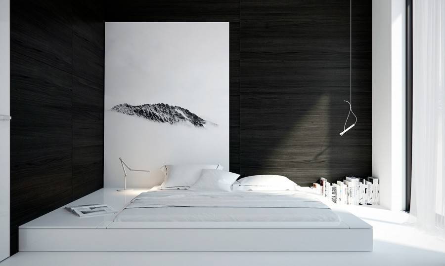 В этом случае декор практически отсутствует, применяются ровные, четкие линии, нет ничего лишнего. Такая комната еще больше помогает расслабиться, настроиться на позитивный лад.