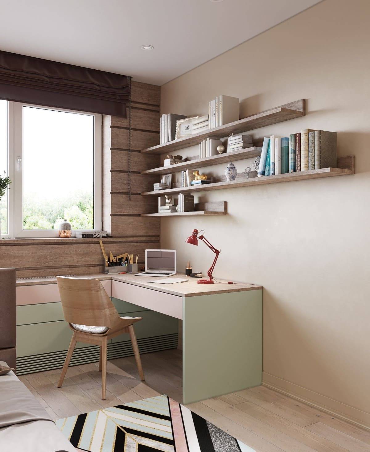 Строгий нейтральный фон позволяет менять интерьер комнаты для подростка по мере взросления. Если, например, в 12 лет девочка любила более яркую мебель, в 16 ей могут понравиться более «взрослые» сдержанные оттенки.