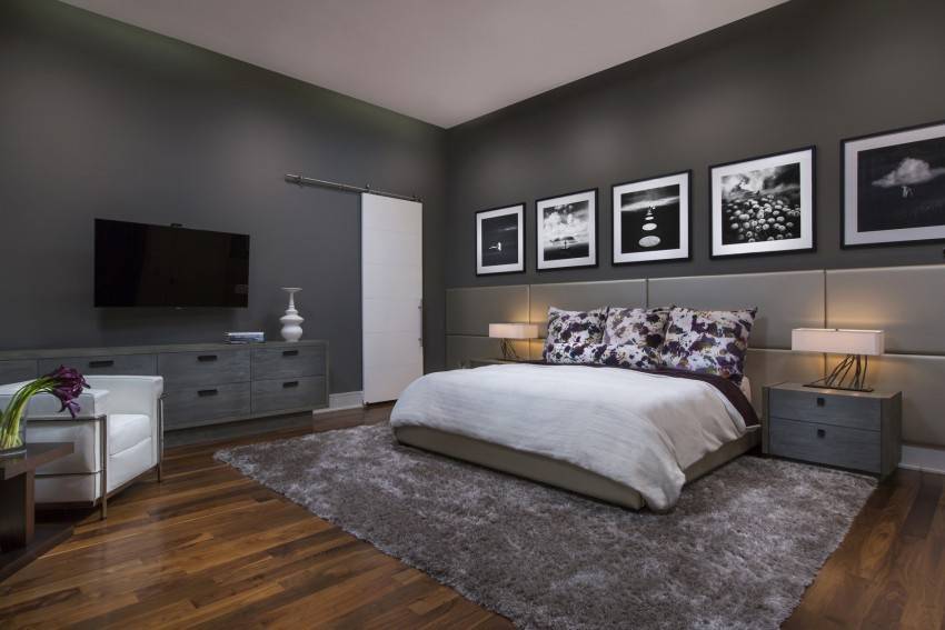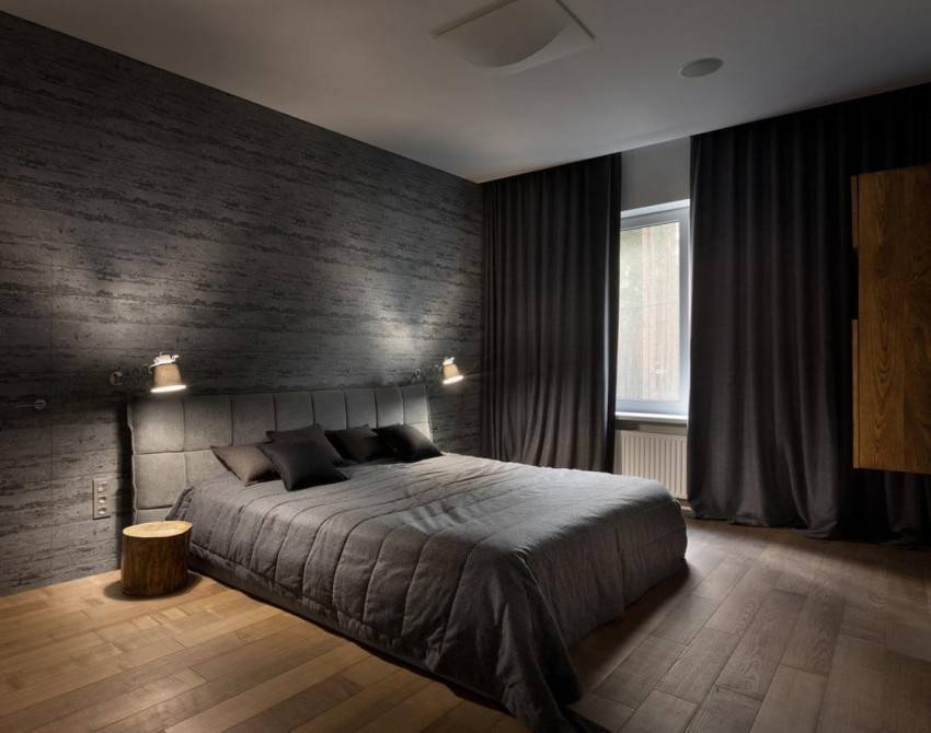 Темные стены выгодно подчеркнет дневной свет из больших окон