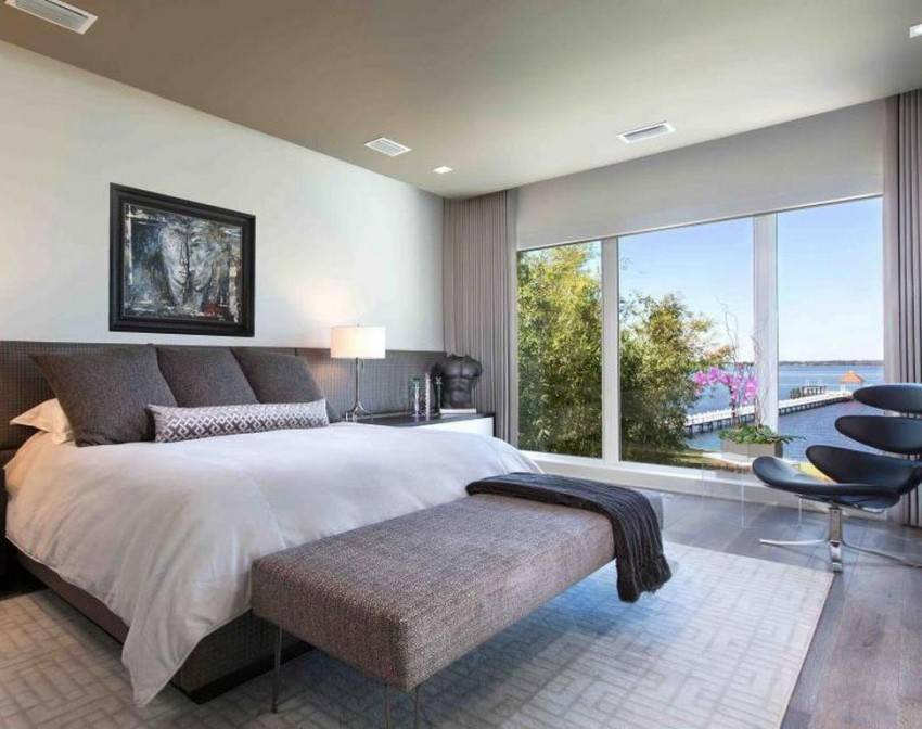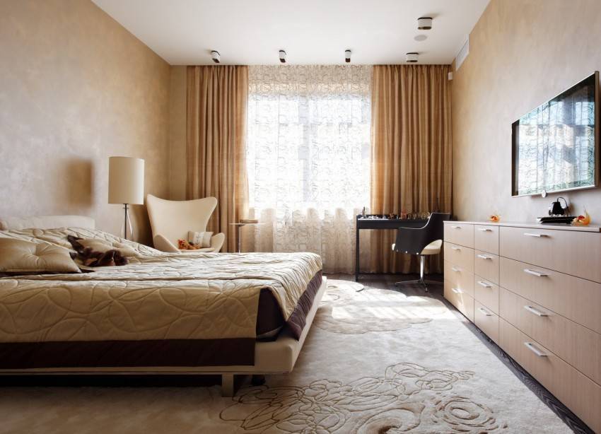 Пожалуй, самый строгий из современных стилей интерьера. В интерьере комнаты используются любые материалы, главное при выборе это практичность. Мебель простых форм, количество минимально, декора практически нет. Цвета весьма сдержанные — серый, бежевый, оттенки коричневого, молочный, белый. Обстановку легко освежить комнатными растениями в простых горшках.