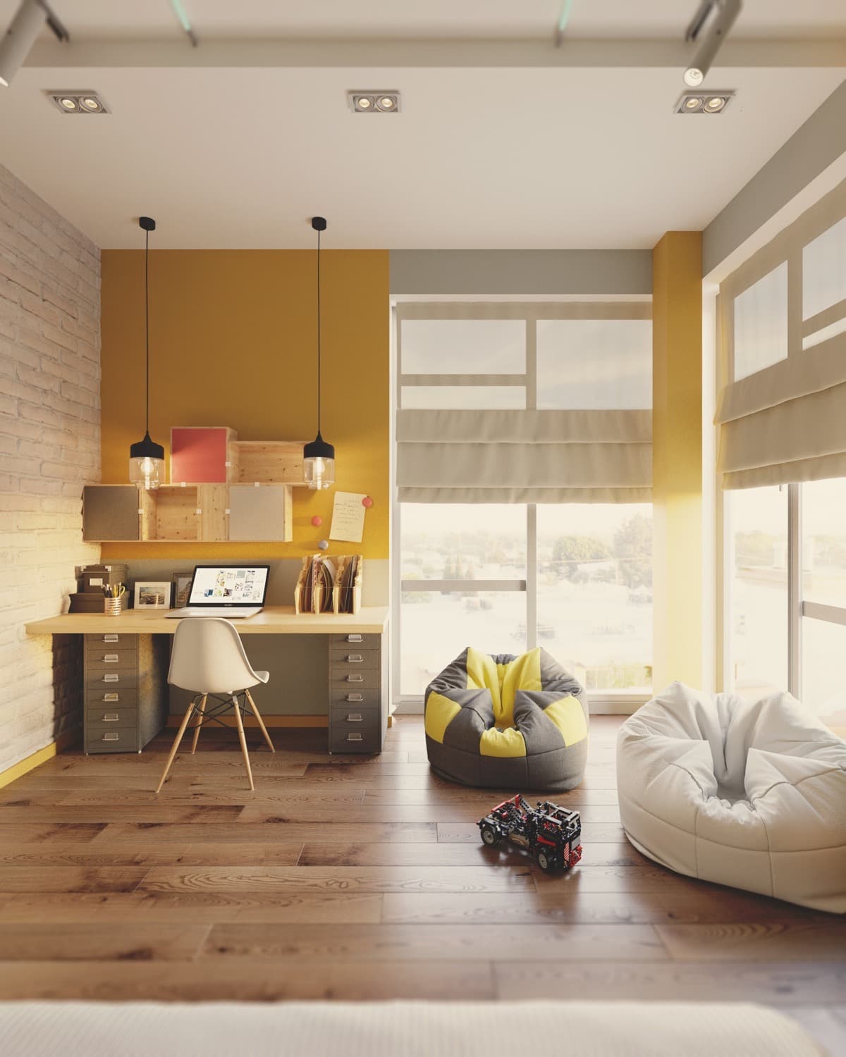 Уже следует добавлять яркие акценты в декор и мебель. Так вы способствуете формированию яркой индивидуальности.