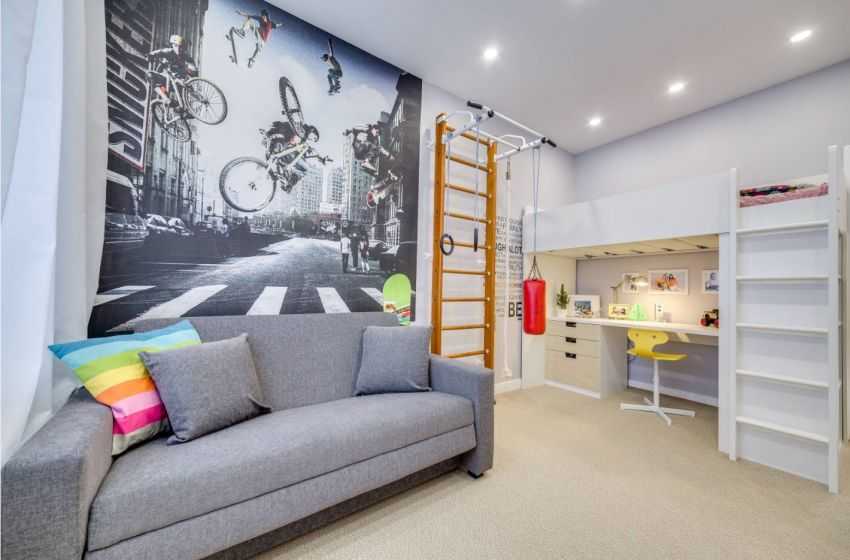 Наличие в доме или квартире нескольких комнат значительно упрощает выбор помещения для спальни мальчика. Детская спальня многофункциональная комната, поэтому отдавать под нее самую маленькую по площади комнату нецелесообразно. Зонирование помещения на несколько функциональных зон требует значительного простора.