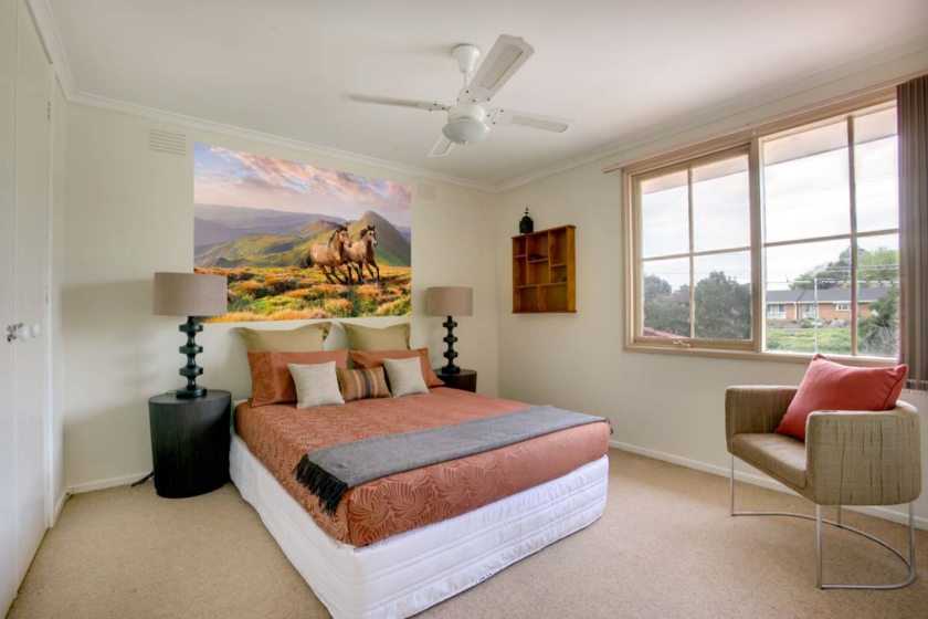 Такой вариант оформления больше подходит для спален с однотонными обоями в качестве основных, так как на фоне обоев с рисунком фотоматериал будет теряться, перегружая собой пространство и создавая дополнительную психологическую нагрузку на присутствующих. Такая атмосфера вряд ли поспособствует полноценному отдыху.