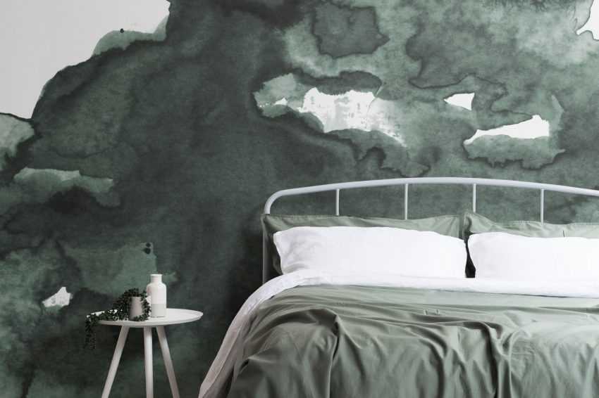 тканевые обои отлично подходят для оформления изголовья кровати