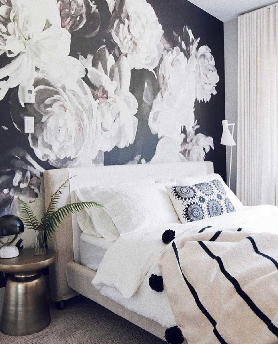 обои с крупным принтом для современной спальни