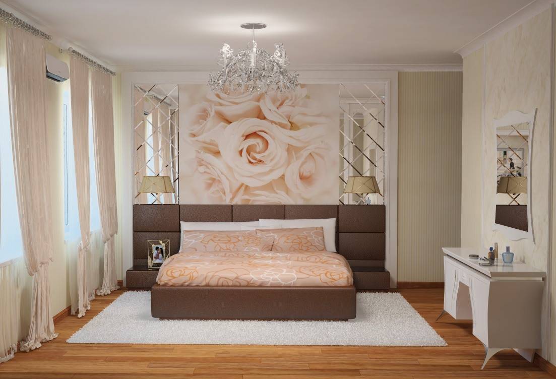 - Визуально расширяет спальню, что способствует сокрытию геометрических недостатков планировки;