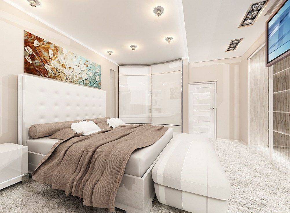 Белая спальня, пожалуй, самый распространенный вариант спальни в современном стиле. Для того, чтобы комната не напоминала больничную палату, можно добавить в комнату ярких акцентов в виде картин или фотографий.