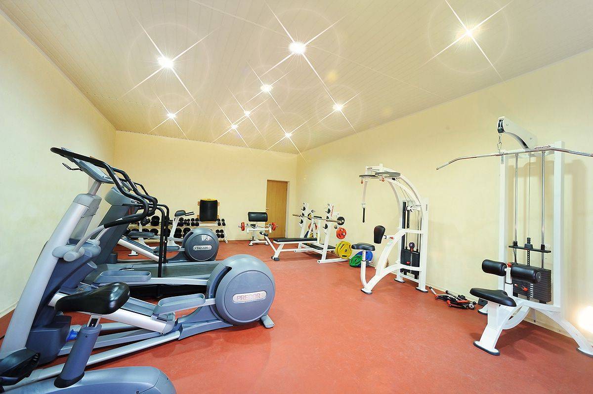 Особое внимание стоит уделить зонам у зеркал: здесь уровень освещенности должен быть максимально высоким. Можно добавить дополнительные потолочные светильники, которые смогут полноценно освещать спортсмена