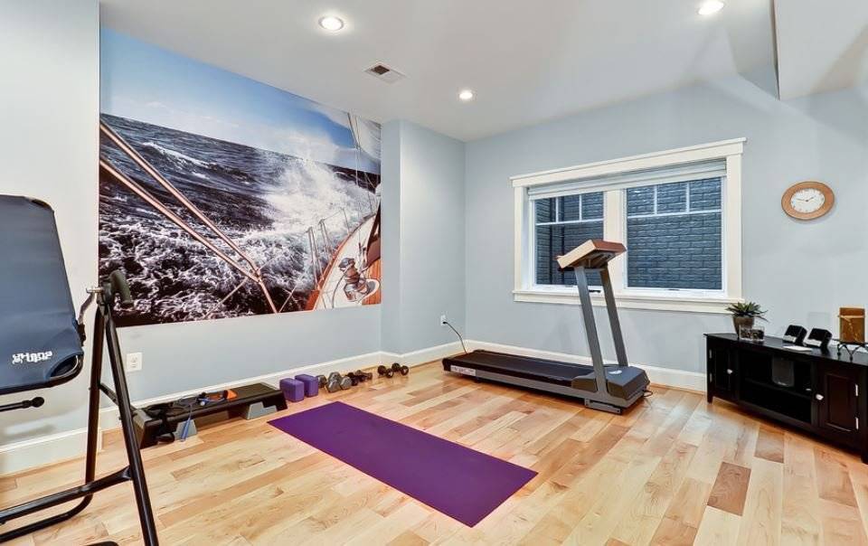 Если в комнате есть большое окно, через которое проходит большой поток естественного света, планируйте расстановку тренажеров и снарядов так, чтобы оконные проемы находились сбоку от них.