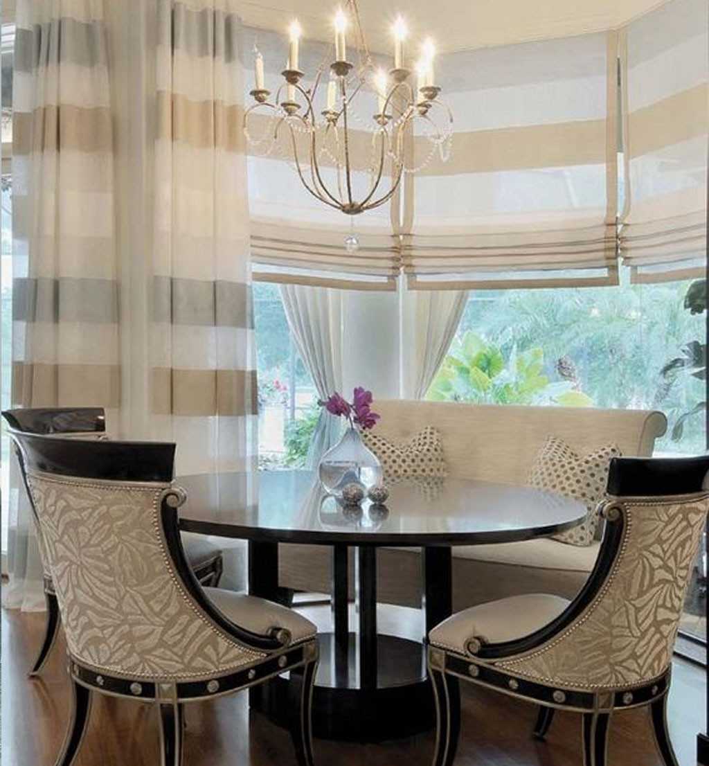Шторы такого дизайна могут украсить столовую в стилях ампир, ренессанс или классицизм.
