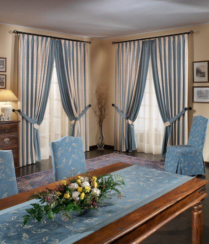 Вертикальные полоски занавесок помогут зрительно поднять потолки.
