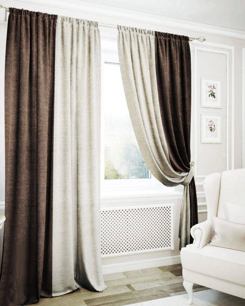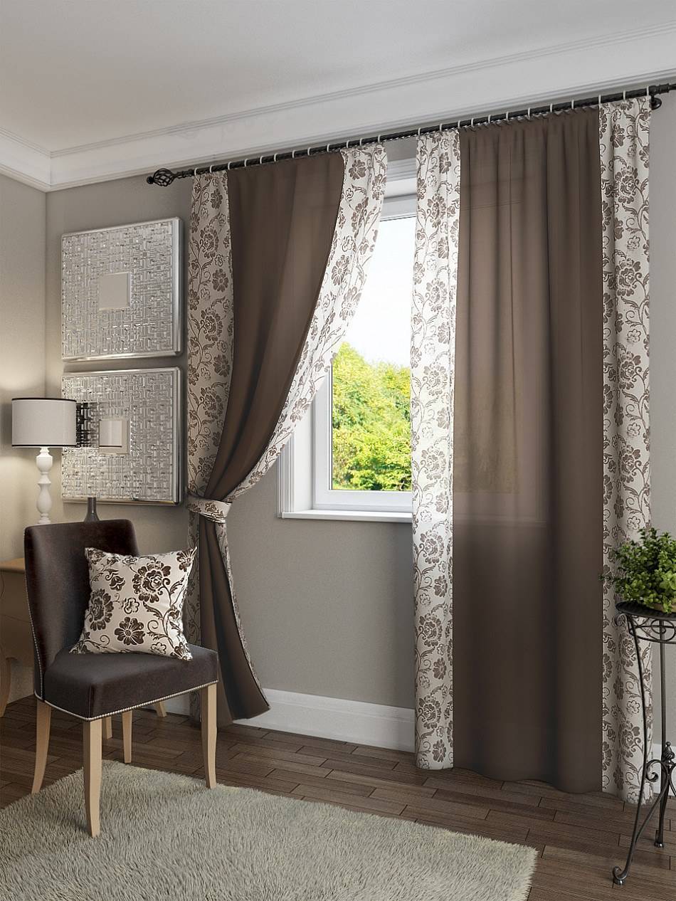 Если планируется использовать комбинированные шторы, они должны сочетаться между собой по стилю, цвету или рисунку. Хотя некоторые новинки дизайна занавесок допускают, казалось бы, несовместимые варианты, и очень часто уютные домашние портьеры дополняются рулонными шторами или даже жалюзи, и выглядит это вполне достойно.