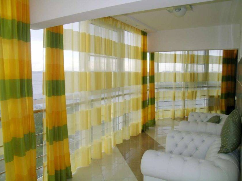 Полосы. Широкие и обязательно горизонтальные, будто делящие шторы на секции.