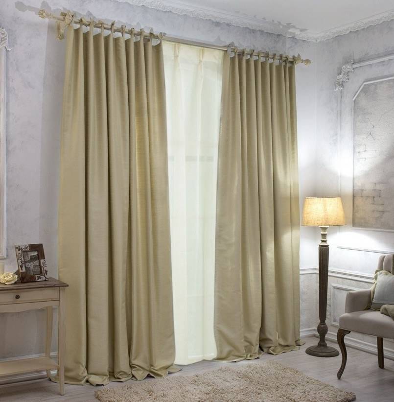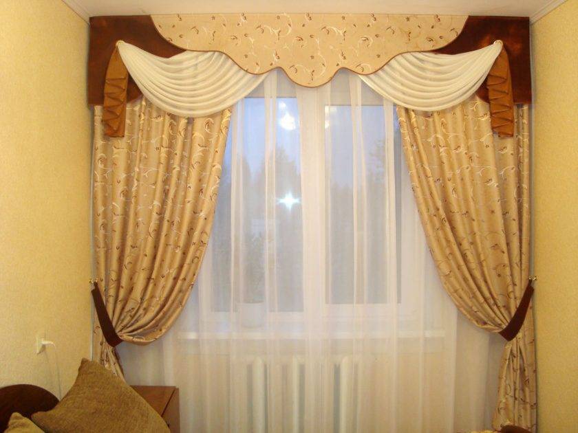 Нейтральный бежевый оттенок – идеальный вариант для штор с ламбрекенами.