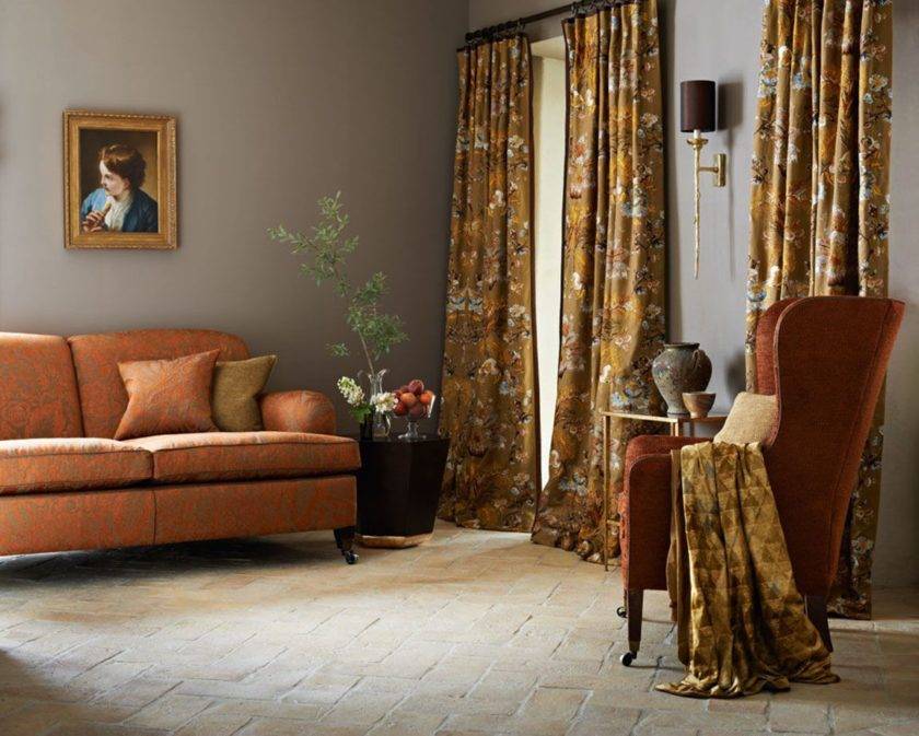 Если берете изделие с растительным принтом, обращайте внимание, насколько уместно он сочетается с мебельной обивкой и общей цветовой гаммой гостиной