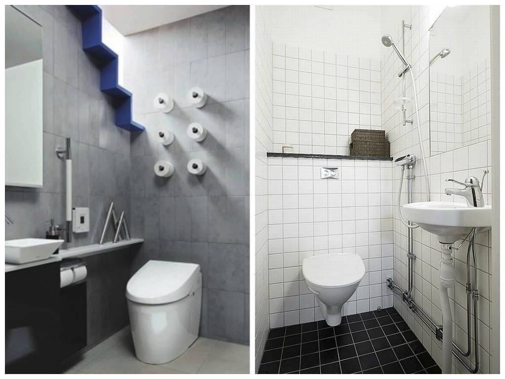 Для физического расширения пространства в маленьком туалете, где негде развернуться среднестатистическому человеку, можно лишь заменить напольный унитаз на компактную современную инсталляцию. Потому основные работы будут осуществляться для увеличения свободного места хотя бы визуально.