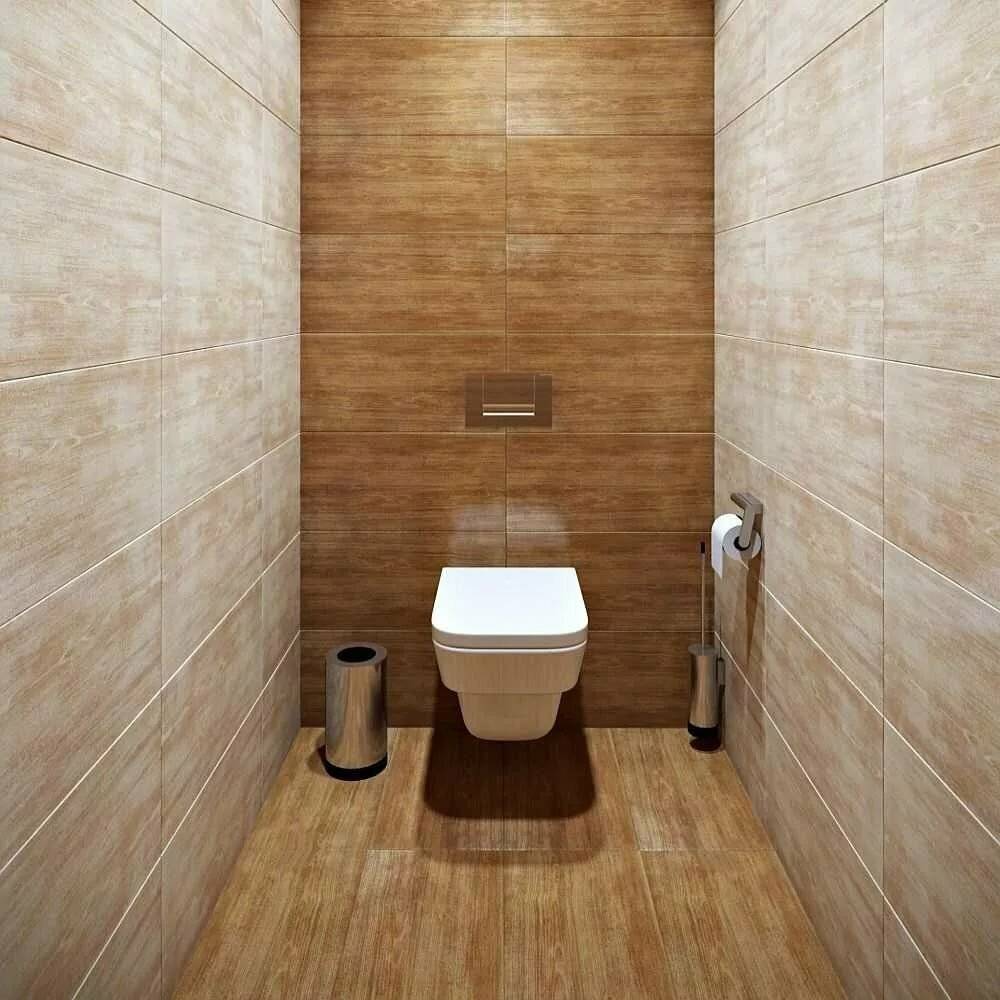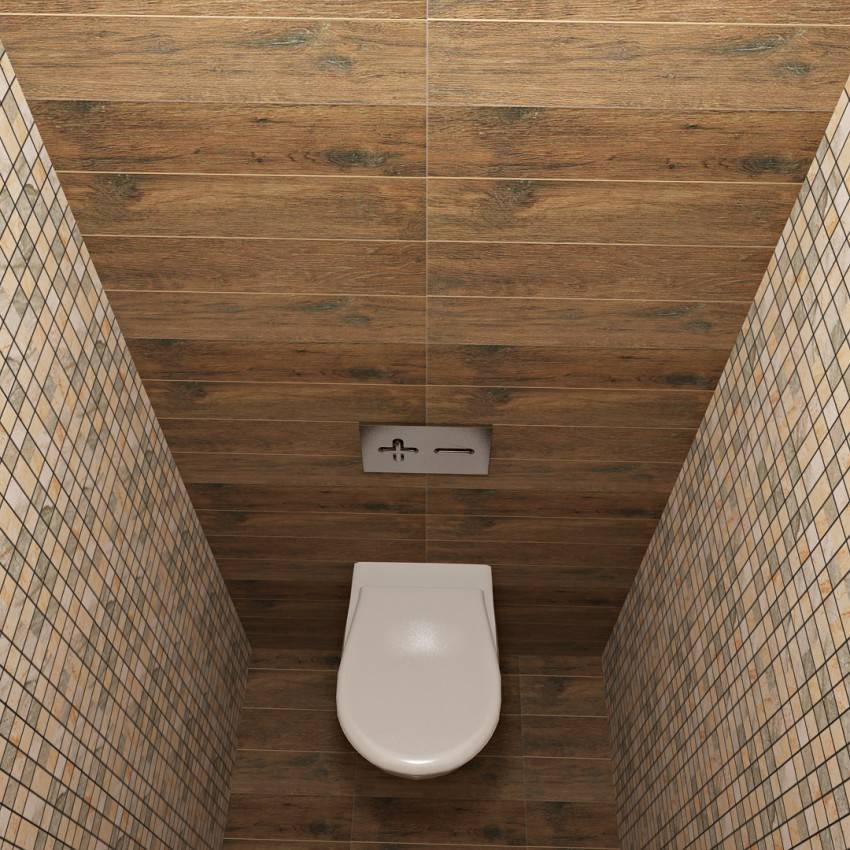Ламинат можно крепить на клей прямо к стене, тогда пространства будет скрадываться не больше, чем от укладки плитки. Ламинатом можно отделать одну стену, часть или полностью сделать деревянный интерьер маленького туалета, но тогда нужно подбирать разные цвета дерева для пола и стен.