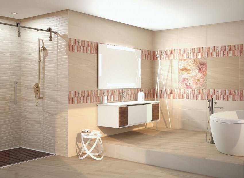 Размещение плиток с панно. Однотонный кафель в ванной без декора уже устарел