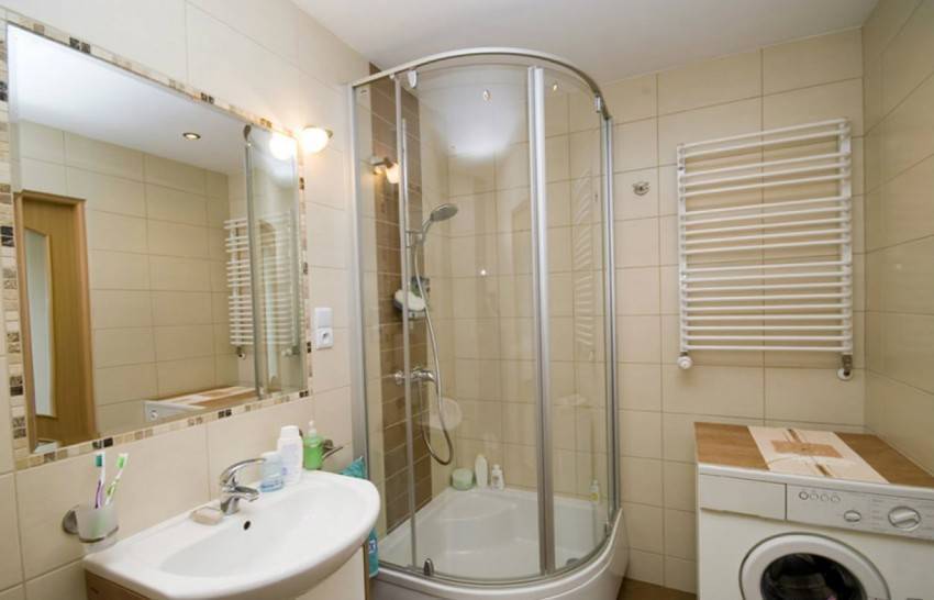 Ванная со стиралкой и душевой кабинойИсточник roomester.ru