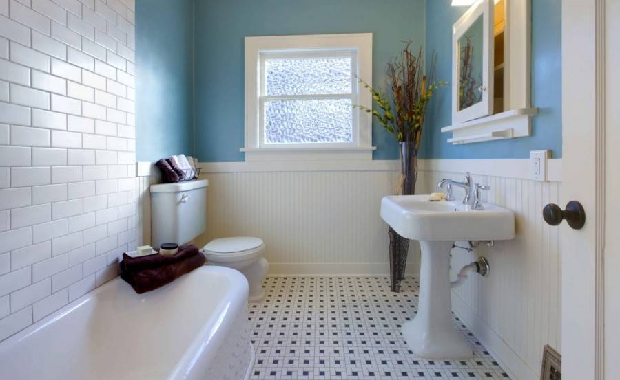 Выбор материалов для облицовки стен в маленьких ванных комнатах невелик. Чаще всего применяют кафельную плитку, стеновые панели ПВХ, водостойкую акриловую краску на латексной основе.