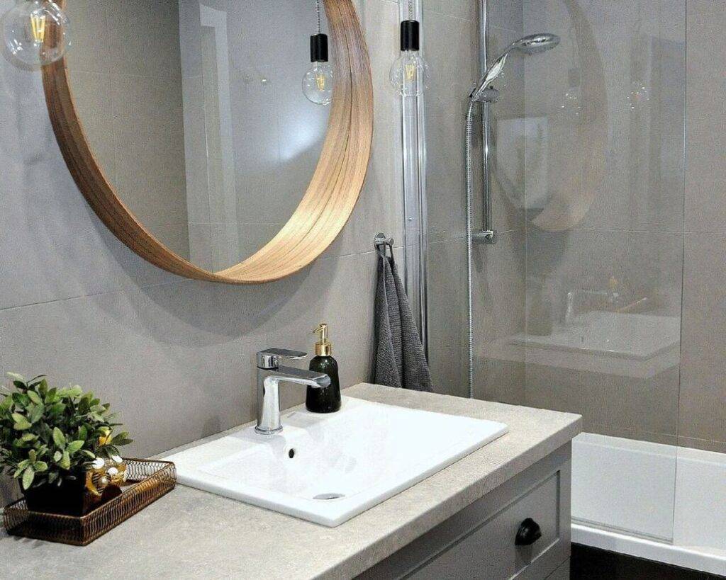 Если вы предпочитаете более брутальные дизайны, то для интерьера вашей ванной комнаты с душевой можно использовать стиль лофт: серые бетонные стены, лампочки Эддисона и также минимум декора.
