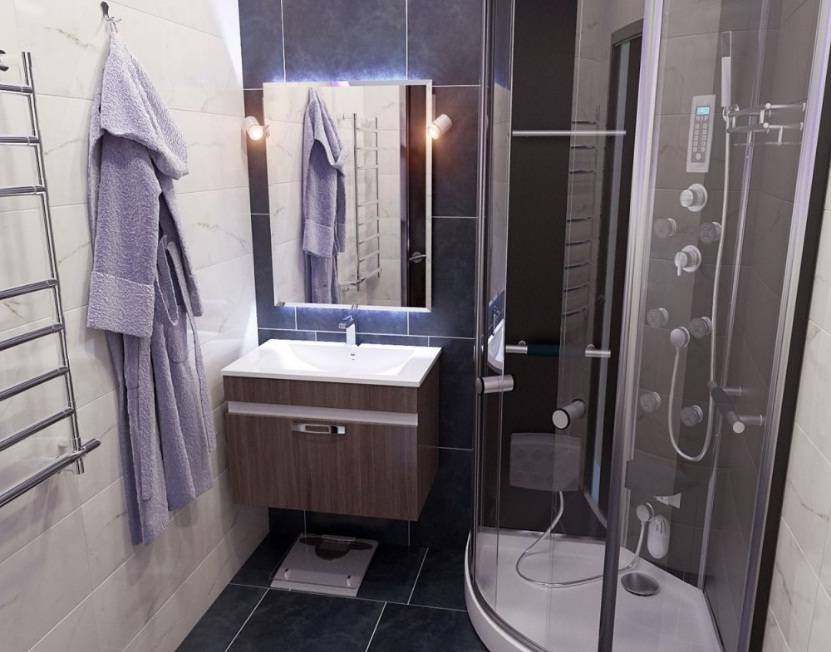 - откажитесь от ванны в пользу душа – конечно, ванна всегда связана в нашем сознании с безмятежным релаксом, белоснежной пеной и музыкой в ушах, однако давайте будем реалистами: в условиях ванной комнаты на 3 кв. м. можно говорить только о сидячей ванне, удовольствия от которой немного, зато душевой уголок позволит вам сэкономить серьезное количество квадратных метров;