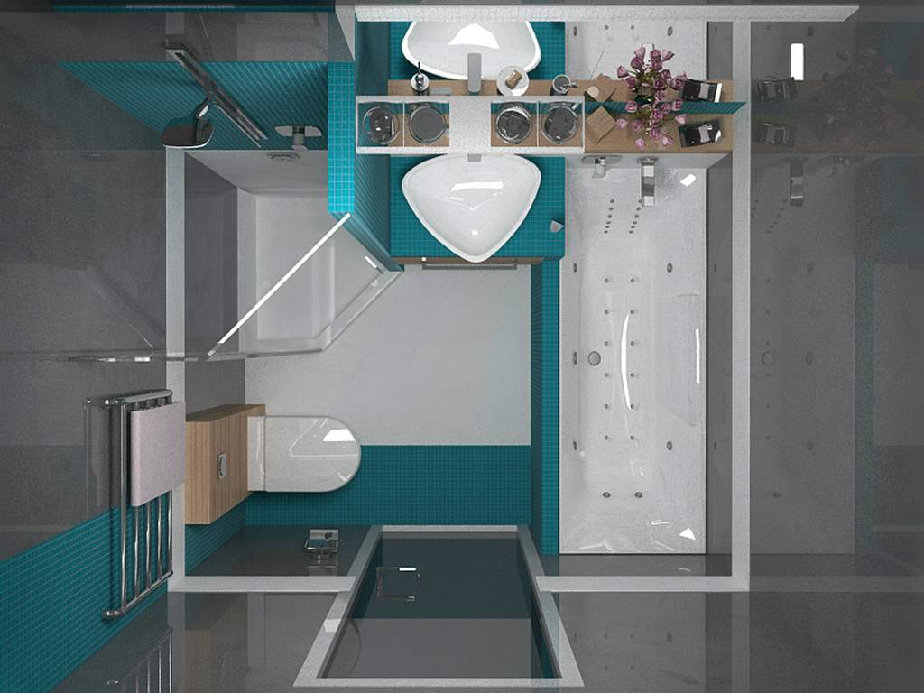 Грамотно продуманная планировка позволит даже в очень маленьком помещении разместить и ванну, и душевую кабину.