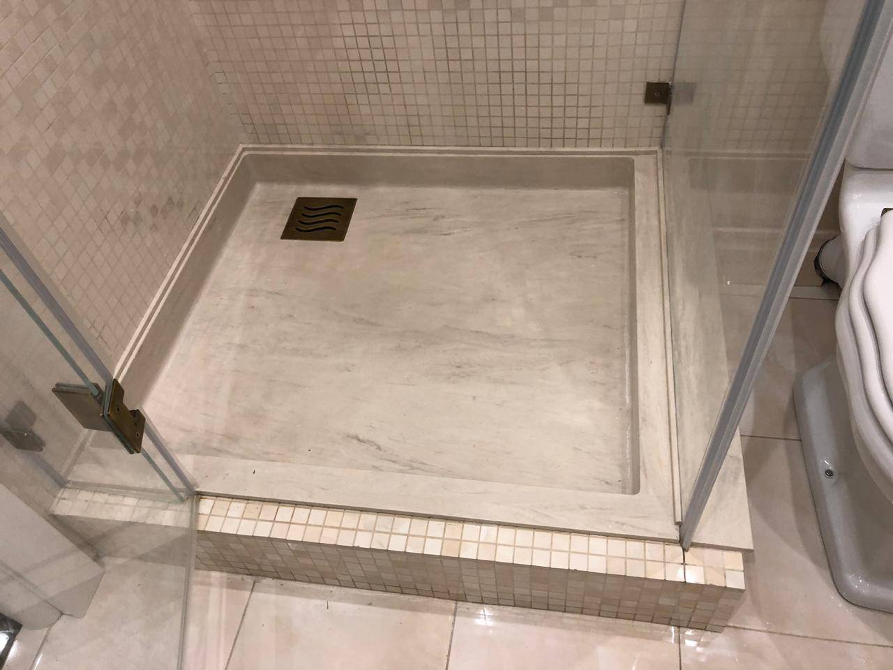 Фото 5. Душевой поддон, установленный после окончания облицовочных работ в ванной комнате.