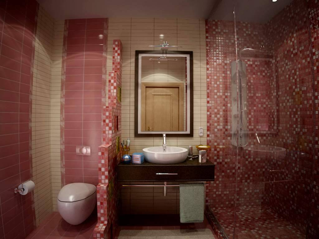 Розовая душевая с мозаичной плиткойИсточник intour.spb.ru