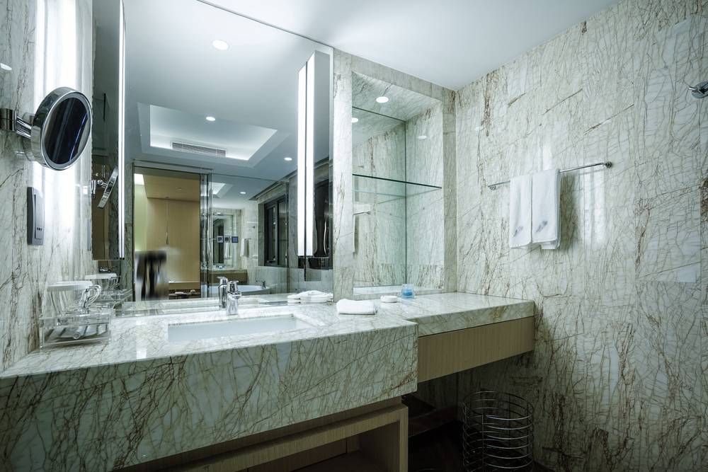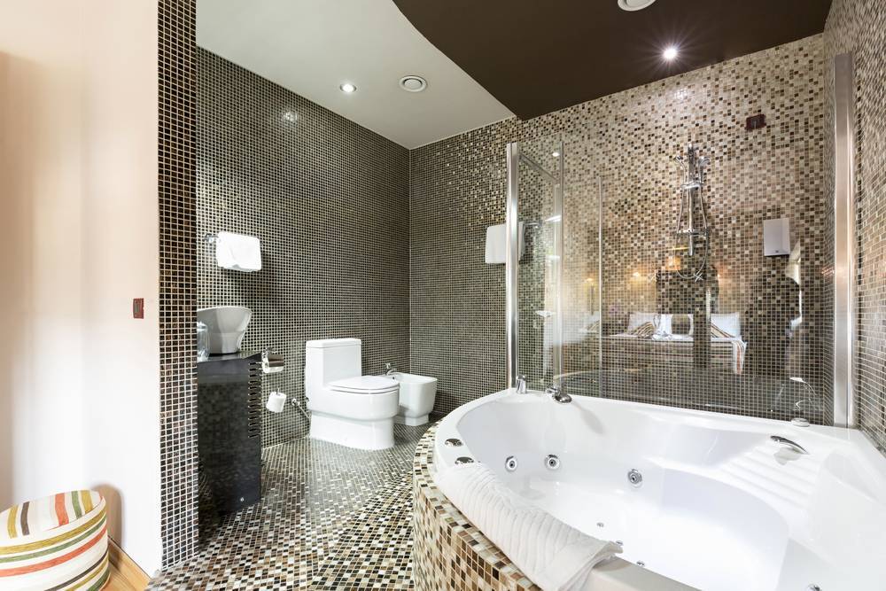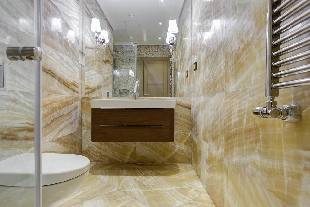 Плитка идеально вписывается в интерьер ванной комнаты в стиле хай тек