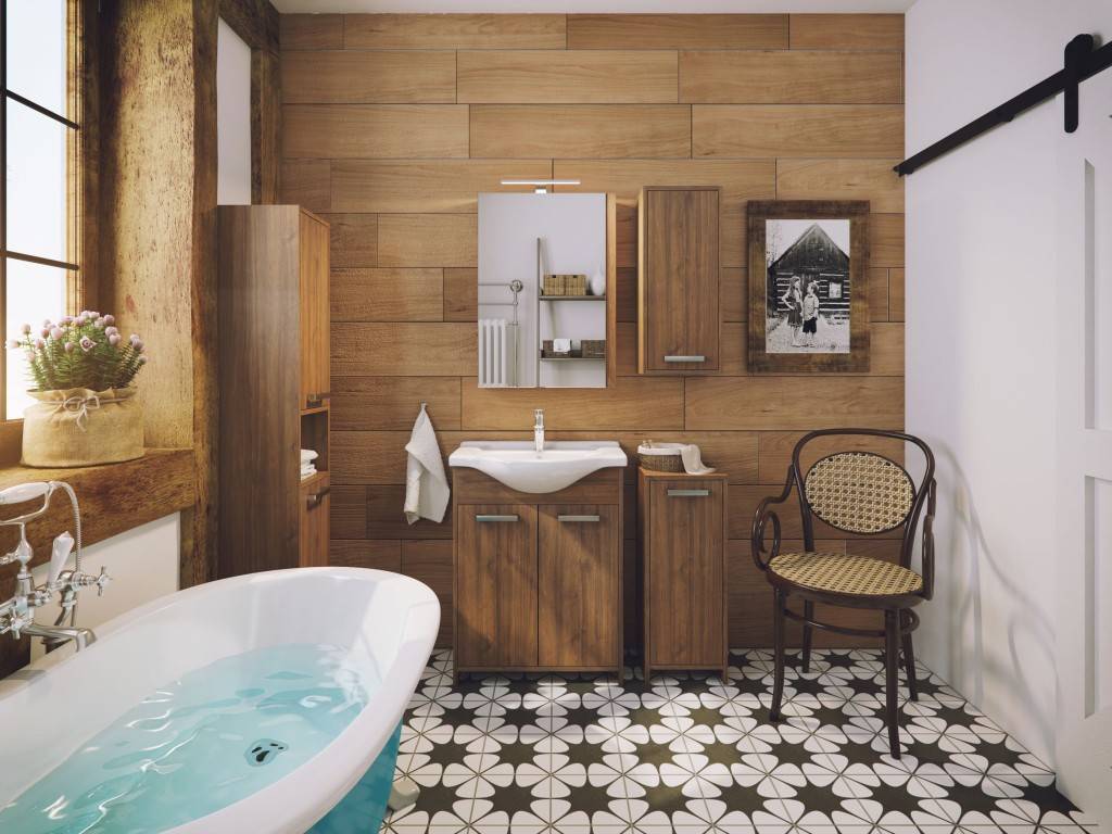 Чтобы быть ближе к природе, рекомендуется оформление ванной комнаты в стиле кантри. Выбрать кафель для такого дизайна не составит большого труда.