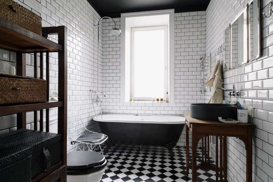 небольшая плитка нестандартных размеров в интерьере ванной комнаты