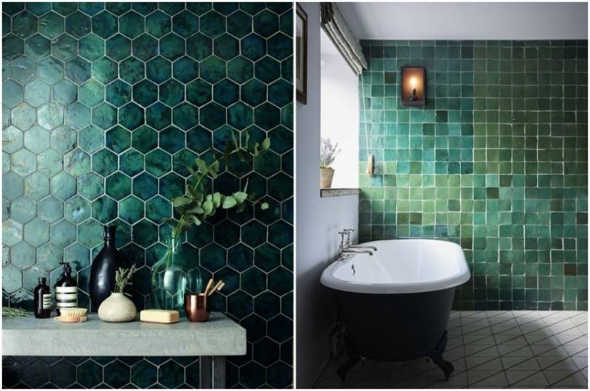 Этот цвет всегда ассоциируется со свежестью. Принятие ванны или душа в такой комнате, поможет справиться со стрессом в разы быстрее, и уберет раздражительность. Хорошо сочетаются темные оттенки зеленого с более светлыми. Темного цвета должно быть, как можно меньше.