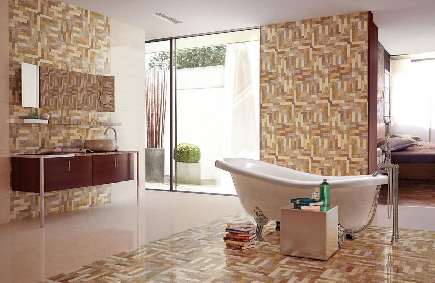 Лидер среди коричневых – оттенок «кофе с молоком». Он может погрузить человека в свои мысли, когда тот принимает расслабляющую ванну, а сам цвет сочетается со многими другими цветами. Древесные же оттенки – более привычны для человеческого глаза, и есть такие плитки для стен в ванной, которые имитируют деревянную поверхность.