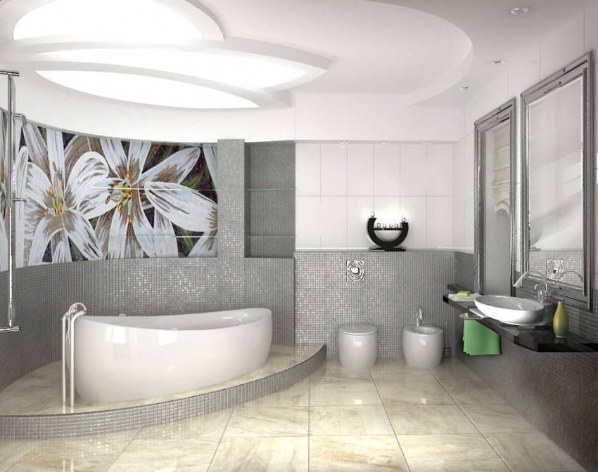 Именно он даст основу для гармоничного сочетания фона, сантехники и прочих предметов друг с другом.